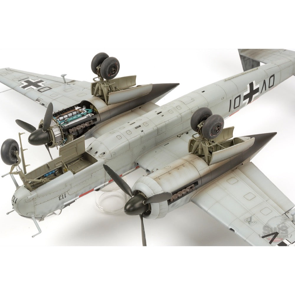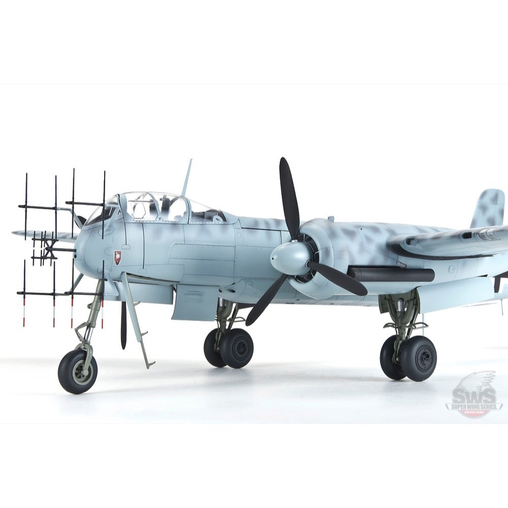 For the first time ever, the "Ninja of the Sky" has been fully realized in 1/32 scale! The organic and unconventionally unique fuselage shape has been accurately captured, and the structures of the nacelles, which can be called one of the true charms of twin-engine planes, have been recreated to directly connect with the DB603A engines, just like in the actual aircraft. Beginning with the ventral gun pack, you will be able to study all of the abundant armament and developed features of the strongest night fighter, and even the historical background of the time -- this is where the true value of the SWS shows through! We were even successfully able to include optional separated canopy frame parts!
