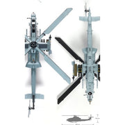 The AH-1 Cobra helicopter (Bell 209) is an attack helicopter in the classic layout, using many components of its "big brother" UH-1 Huey. The first flight of the AH-1 prototype took place on September 7, 1965 and the helicopter entered mass production in the same year. During the Vietnam War, 1,126 machines of the G model were produced, of which 279 were lost in combat. Due to the very high reliability of the structure, small side profile and good performance, the helicopter remains in service to this day in the US Marine Corps. The AH-1 allowed the US Army to fully implement the theoretical assumption of airmobile infantry ("air cavalry") through the fire support of landing infantry units. Today, the AH-1 Cobra is primarily used against an armored celon. From 1965, several versions of this successful helicopter were created, including: AH-1G (basic version), AH-1J (two-engine version), AH-1Q (version armed with TOW missiles). Technical data: Top speed: 333 km / h; maximum range (depending on version): 507-574km, armament: fixed-1 20mm M197 three-barrel cannon, slung rockets, guided missiles, unguided missiles and cannon pods.