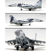 Limited reissue of the Academy 1/48 MiG-29 kit with markings for a Fulcrum of the Slovak Air Force in "digital" camouflage. Sections of the camo are represented by decals, so spare yourself the agony of using yards of carefully-cut Tamiya tape by building this kit!