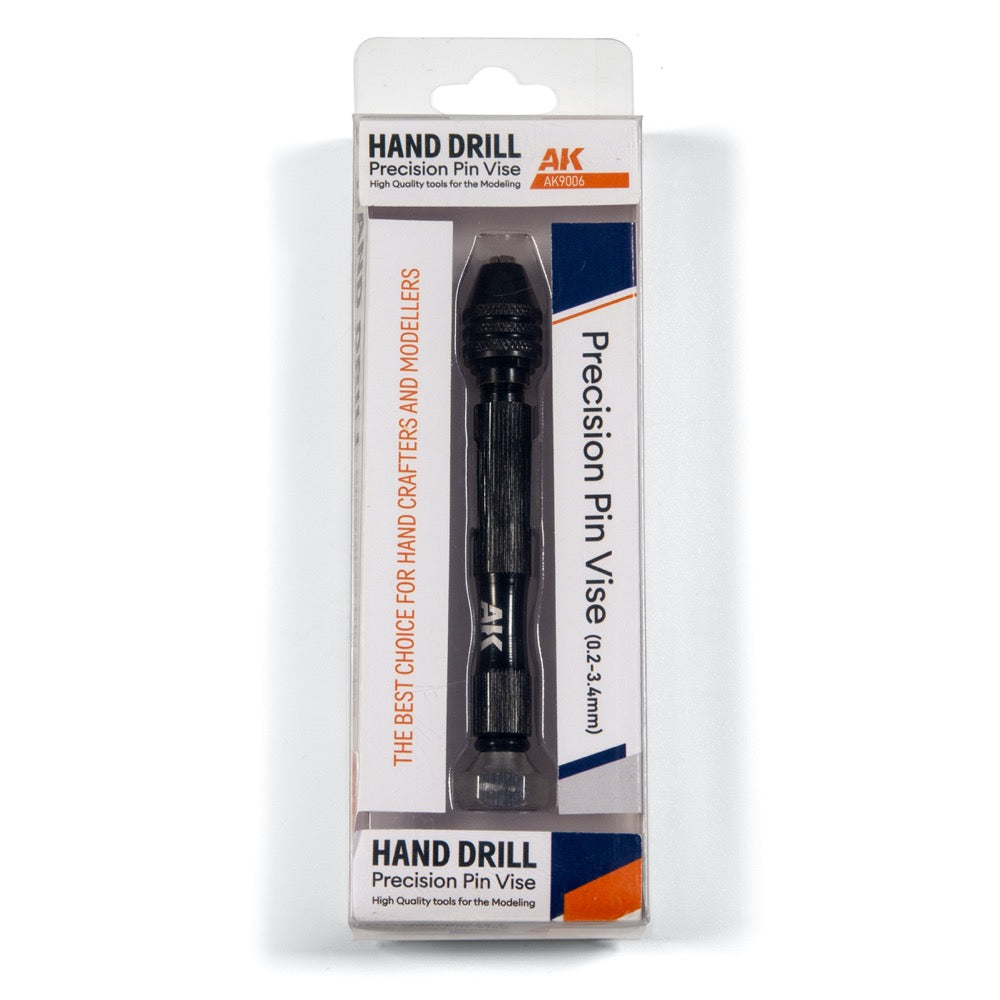 Precision hand drill made of aluminum alloy and lacquered in black with the brand logo, valid for drill bits from 0.2 to 3.4mm. A very practical, precise and very efficient tool for all types of holes in the models or in any craft and jewelry work.