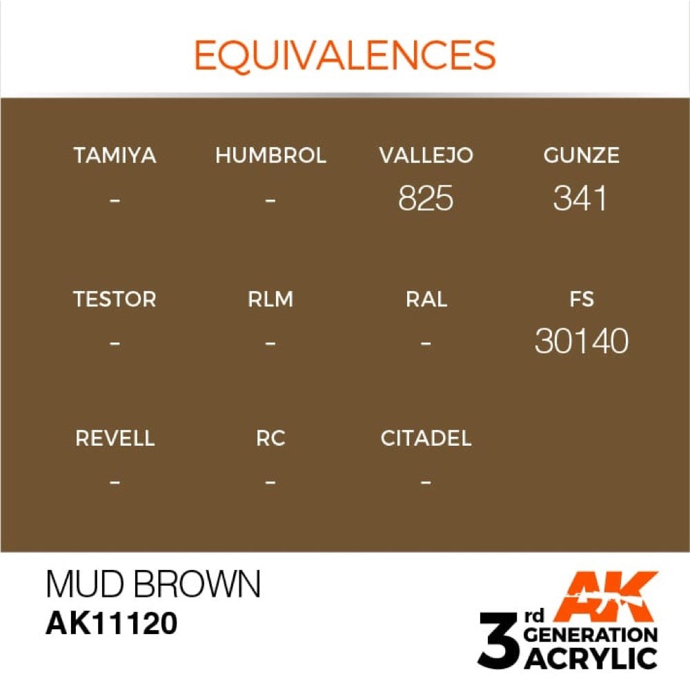 AK Interactive AK11120 Mud Brown Acrylic Paint 17ml (3rd Generation)