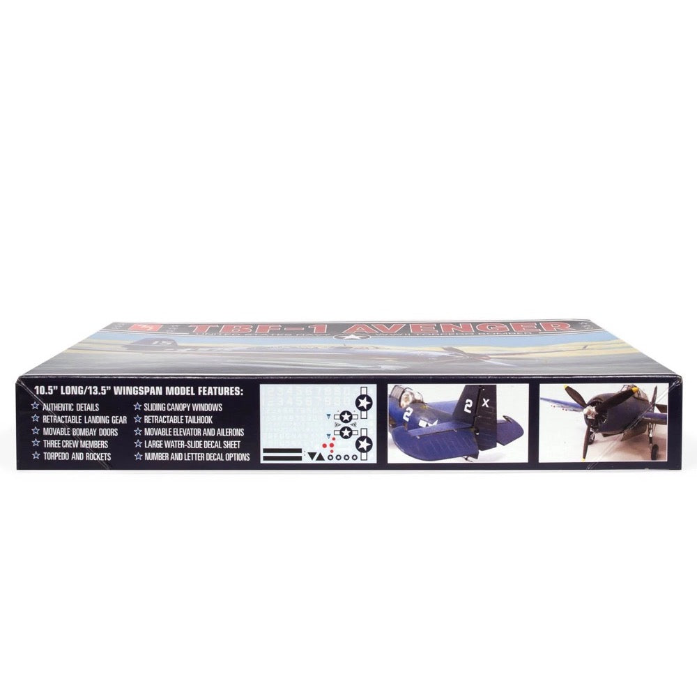 AUTHENTIC DETAILS: The TBF Avenger kit includes retractable landing gear, movable bombay doors, sliding canopy windows, retractable tailhook, movable elevator and ailerons, torpedo and rockets, three crew members, colorful water-slide decals that feature many US Navy aircraft markings, number and letter decal options and more—all wrapped up in eye-popping, vintage-style packaging!