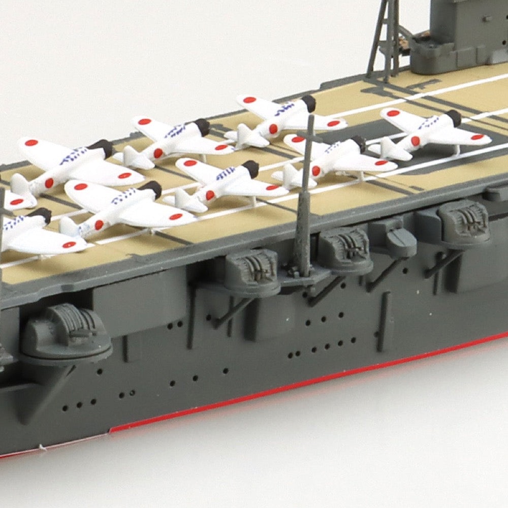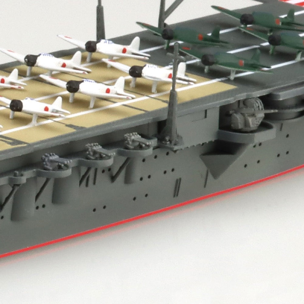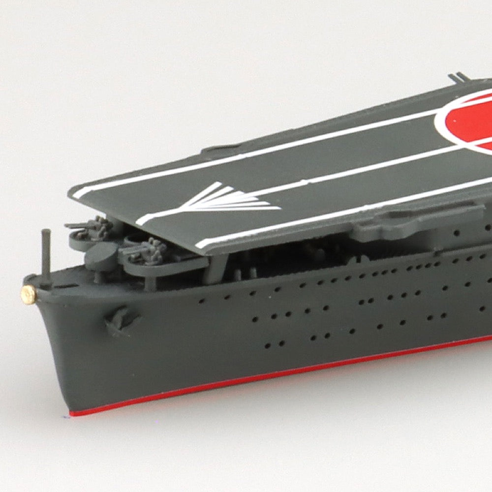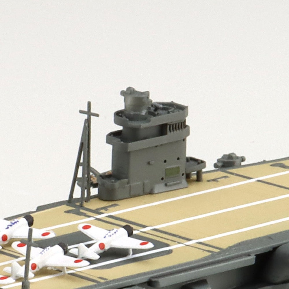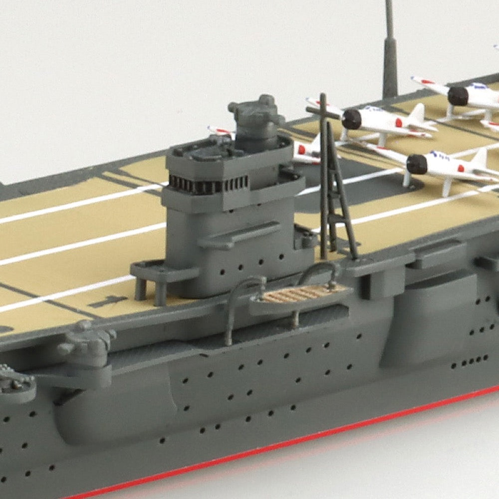 The aircraft carriers Hiryu and Soryu were built under the London Disarmament Treaty in 1930, and were part of the 1933 disarmament expansion plan. Soryu was completed first, but further improvements were made to Soryu, and Hiryu was completed at the Yokosuka Naval Arsenal on July 5, 1939. Based on the operational experience of the previously completed Soryu and Kaga, it was decided that Hiryu would have the bridge installed in the center of the hull so as not to interfere with the aircraft taking off; the chimney on the starboard side was placed on the port side to be on top of the ship. Although the arrangement was favorite in terms of weight distribution, it was discovered that the air currents generated from the bridge had an adverse effect on carrier-based aircraft landing on the ship. Therefore, aircraft carriers built after this time had a bridge on the starboard side; Hiryu and Akagi were the only ones with a bridge on the port side, giving them a unique appearance. She became an extremely successful and powerful aircraft carrier, with features such as high-speed performance exceeding 34 knots, improved hull strength, improved defense capabilities, and a carrying capacity of 57 aircraft.