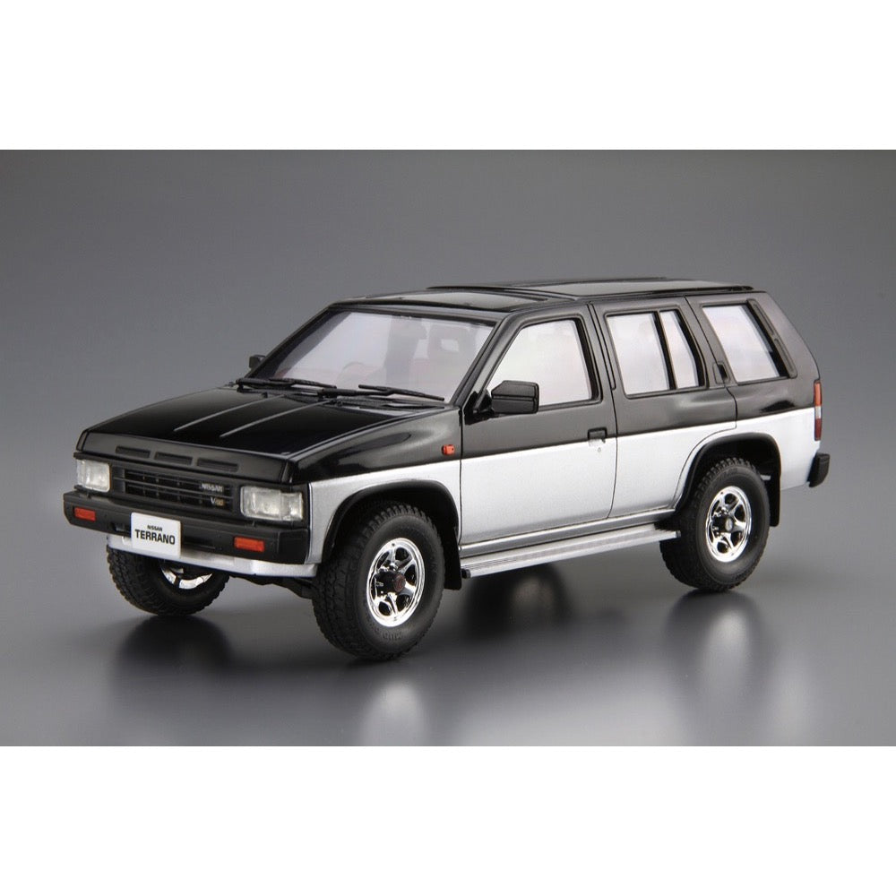 This kit replicates the V6-R3M grade with 4-door and V6 VG30E engine in its catalog specification with enlarged front bumper, grille guard and fog roof. Also includes window masking seals and aluminum wheels, so you can build the Terrano of your choice. Will be about 18.1cm long when completed.