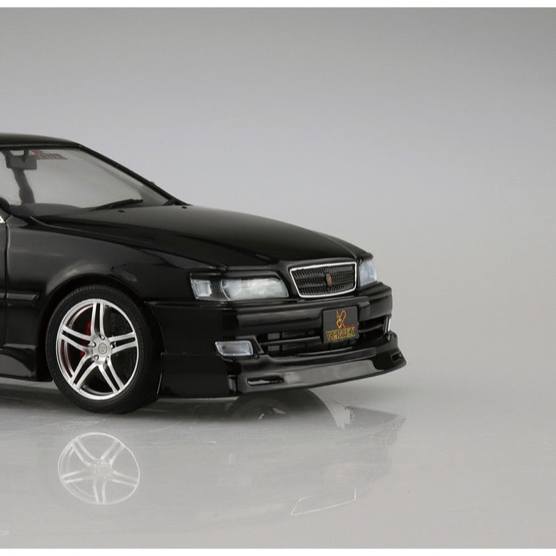 From Aoshima comes the Vertex JZX100 Chaser in 1/24th scale! It will measure about 202mm long when completed, and features a front bumper spoiler, front half spoiler, eyeline garnish, side step, rear bumper spoiler, muffler, and 18inch AVS Model 5 wheels.