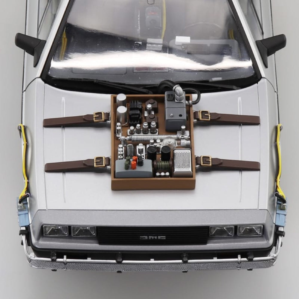 • This model kit includes lots of newly-molded parts, and is a precise reproduction of the time machine equipped with a "bonnet box" made from 1955 parts!