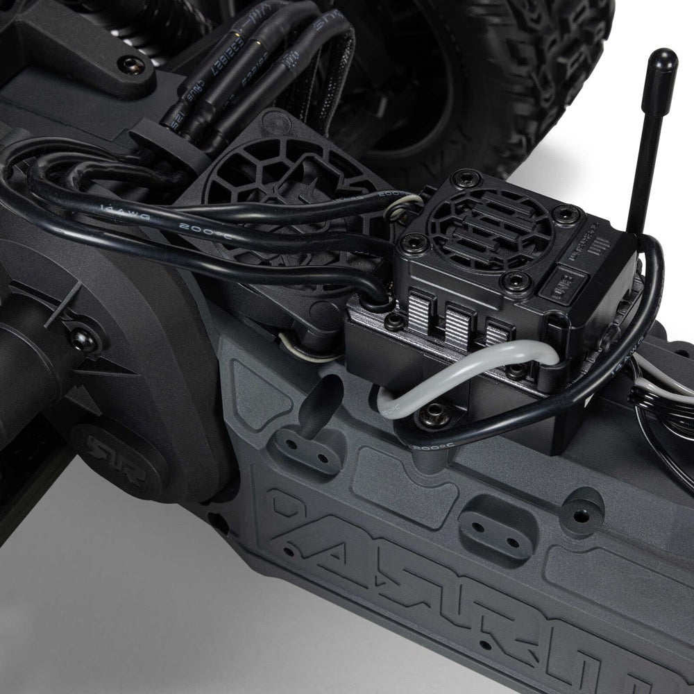 Factory assembled and installed, the heavy-duty, metal gear differential sends power from the Spektrum 3660 4000Kv brushless motor to the rear wheels for blasting through challenging terrain. The entire power system is well-protected for dependable performance on all terrain.