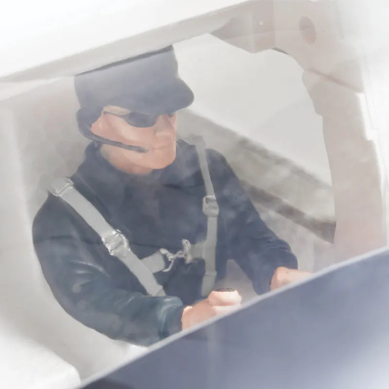• An oversized cockpit canopy in a transparent brown vacuum-molded cabin, complete with a pilot and lifelike instrument panel adds fun and scale realism to the flying experience.