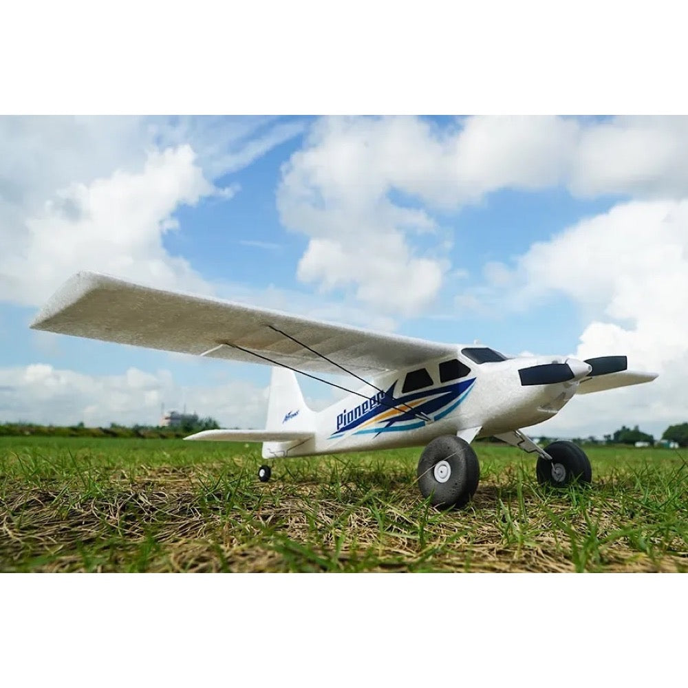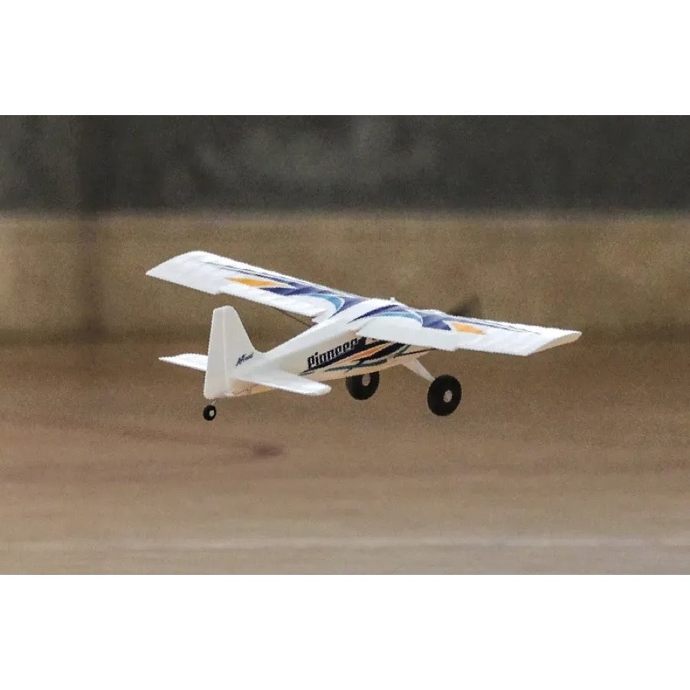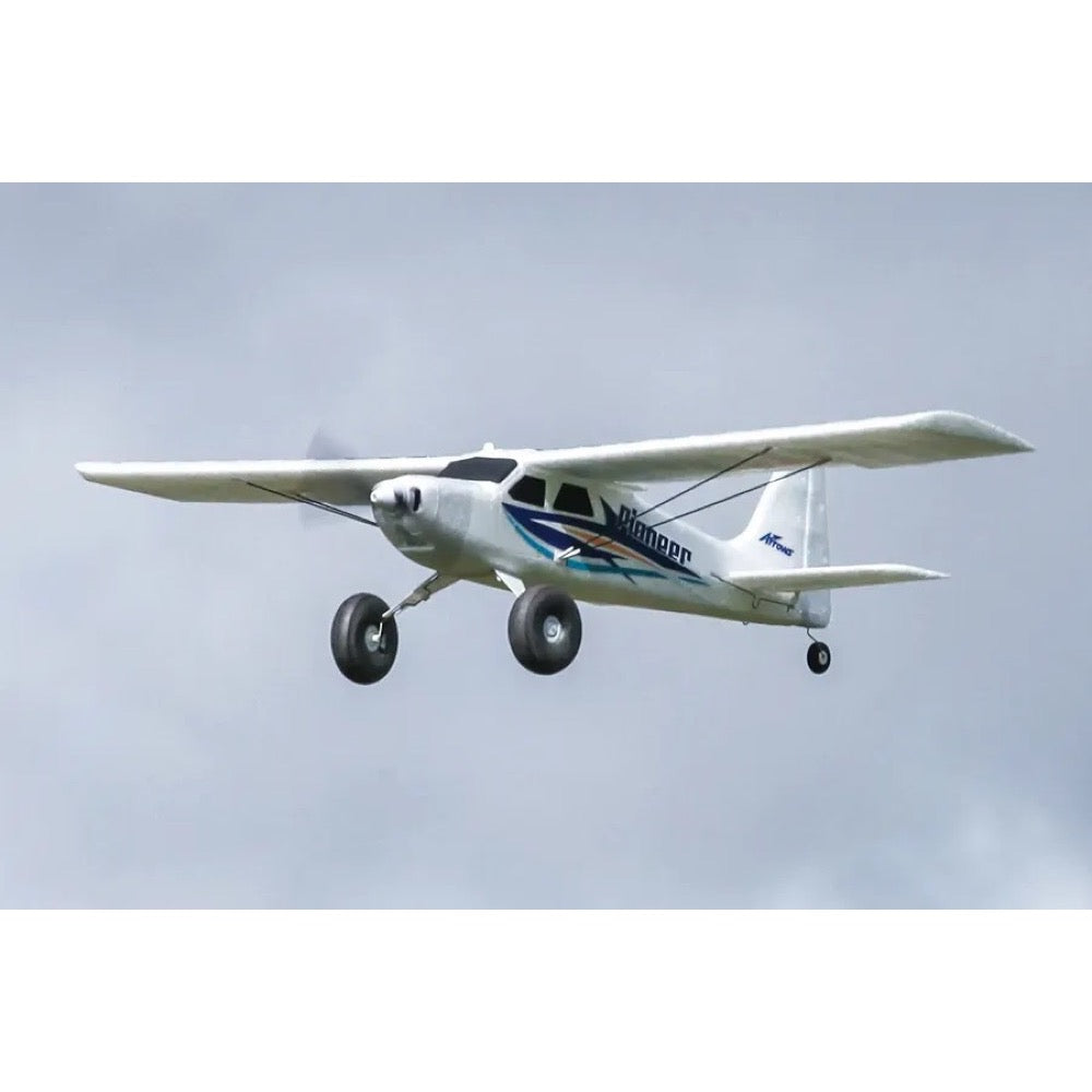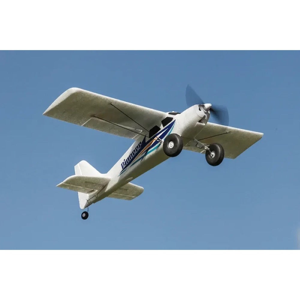 As a proper "all-rounder", the Pioneer has a classic high-winged tail-dragger design- allowing for predictable handling characteristics. The pre-installed ESC and flight control system eliminates the need for complicated wiring harnesses and setup.