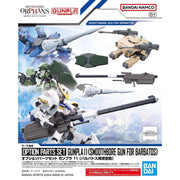 The Barbatos Smoothbore Gun joins the "Gunpla Option Parts" lineup from Bandai! The gun can be folded and mounted on the back; the Schwalbe Glaze Lance can be combined with the short-barrel rifle, too. A mobile worker figure (CGS/ground use) is included too.