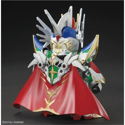 This new-generation Gundam combines elements of the old Knight Gundam with the design of the Gundam World Series. Plentiful clear parts give him an air of mystery, and large sword is included, which can be attached to his back. His richly expressive cloak is also included. He can ride Trinity bikes and war horses, too, with some parts attached and detached.