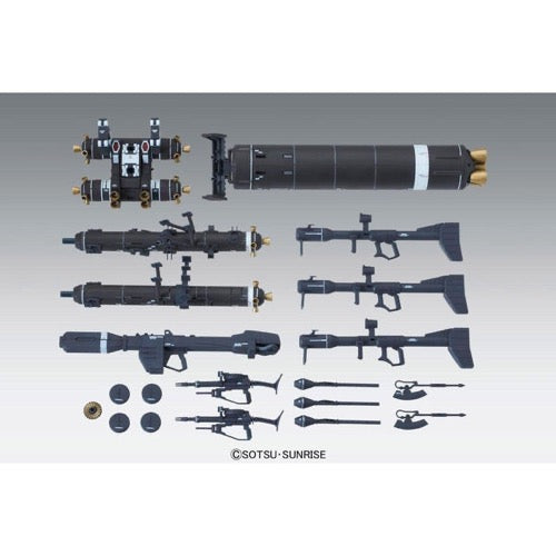 The cockpit hatch can be opened, and it's armed with the Beam Bazooka, three Giant Bazooka, two Zaku Machine Guns, two Heat Hawks, and three Sturm Fausts, and more!