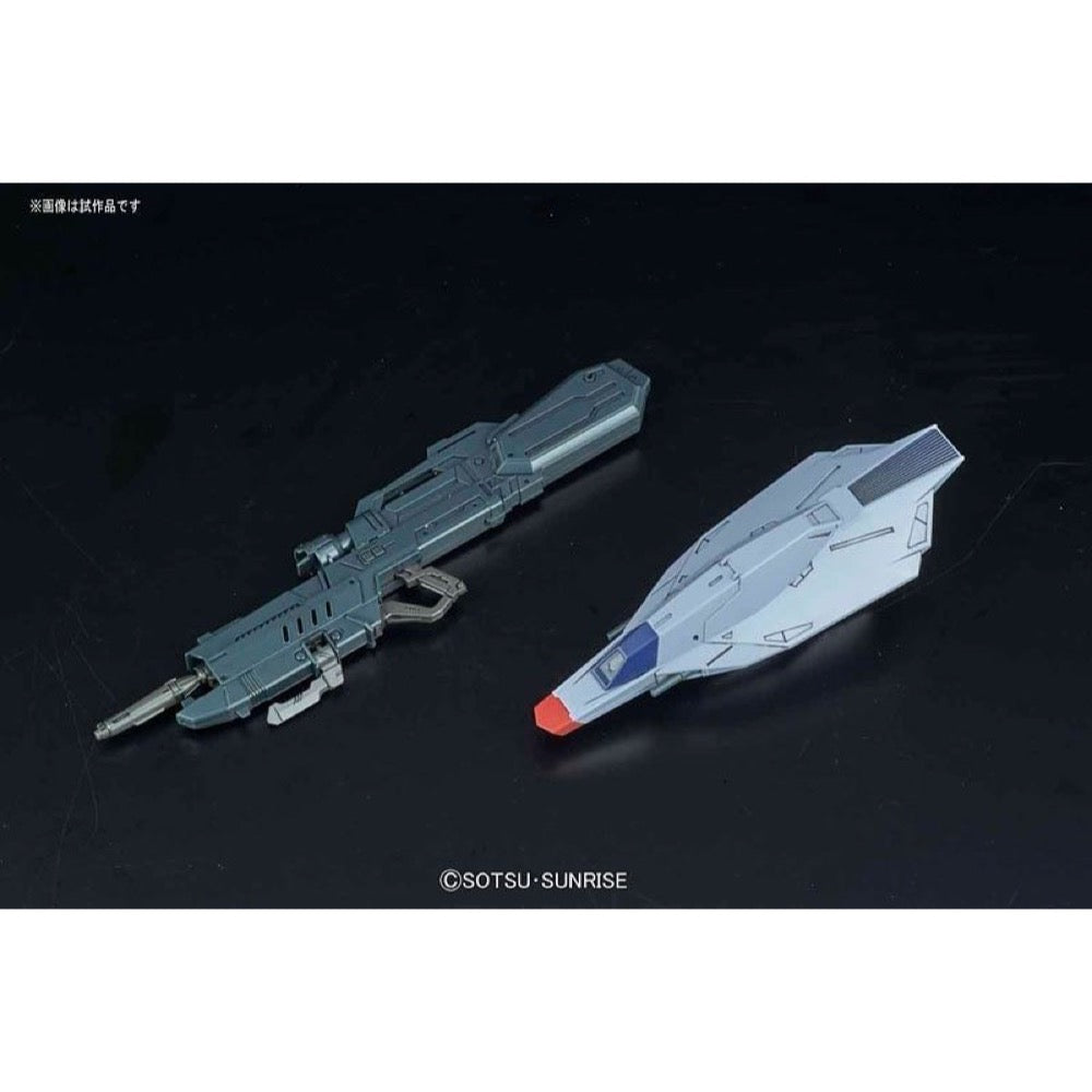 It's armed with its MA-M221 Judicium Beam Rifle, the MA-MV05A Composite Armed Shield System, a large dragoon pod, a small dragoon pod, and dragoon effect parts.