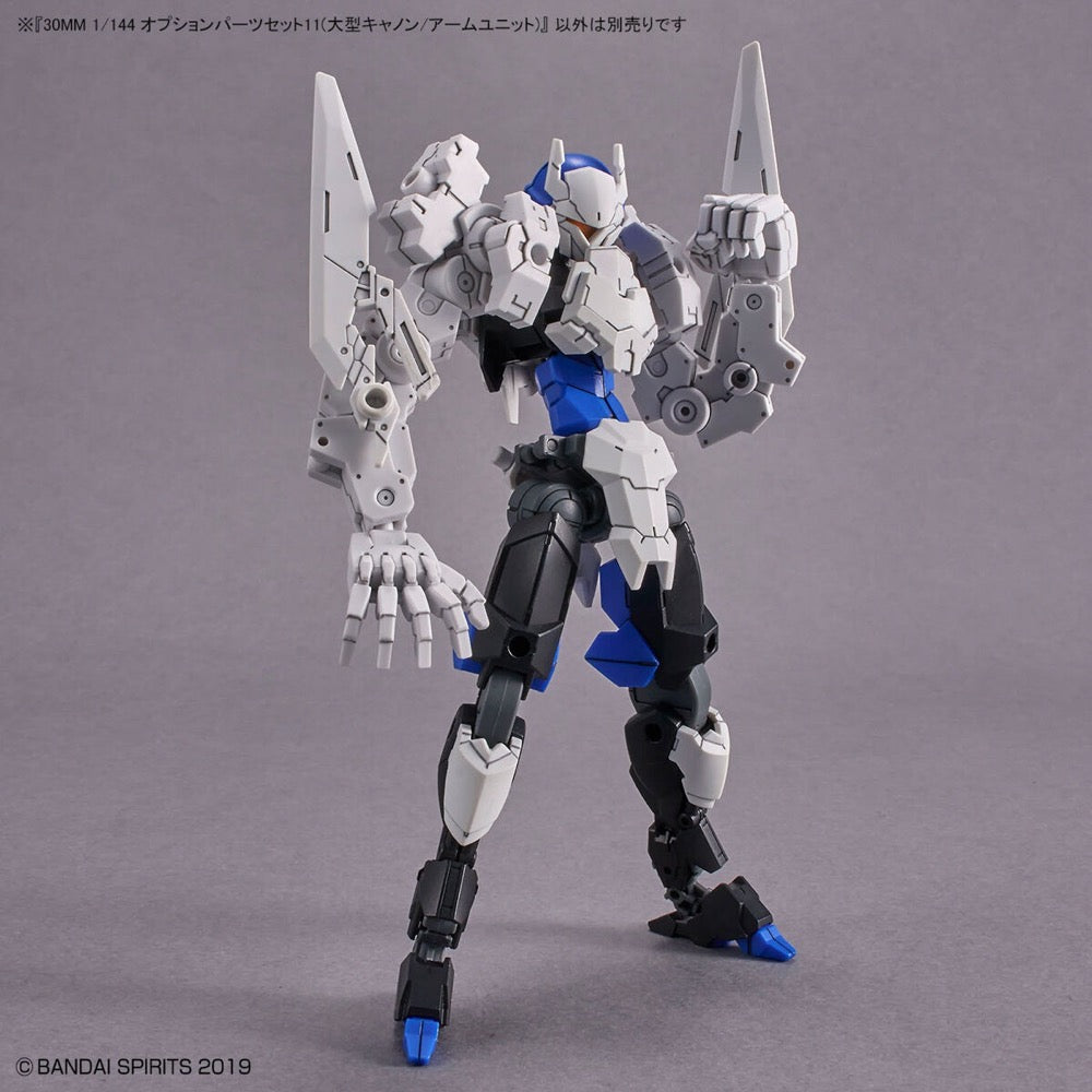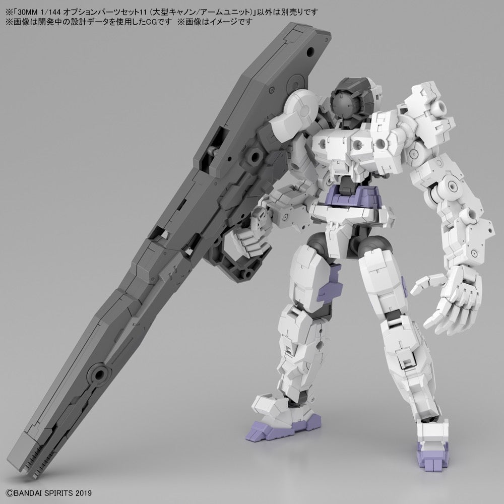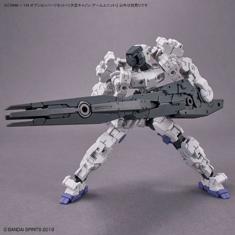 Comes with a large cannon, arm unit, large hand parts, and customized head parts. The large cannon and arm unit can be combined with the separately sold "30MM 1/144 Option Parts Set 9 (Large Booster Unit)" and "30MM 1/144 Option Parts Set 10 (Large Propellant Tank Unit)" to create a fully armored form. Can. The included customized head parts can be combined with items such as the separately sold ``30MM 1/144 Option Parts Set 6 (Customized Head A)'' and ``30MM 1/144 Option Parts Set 7 (Customized Head B)''.
