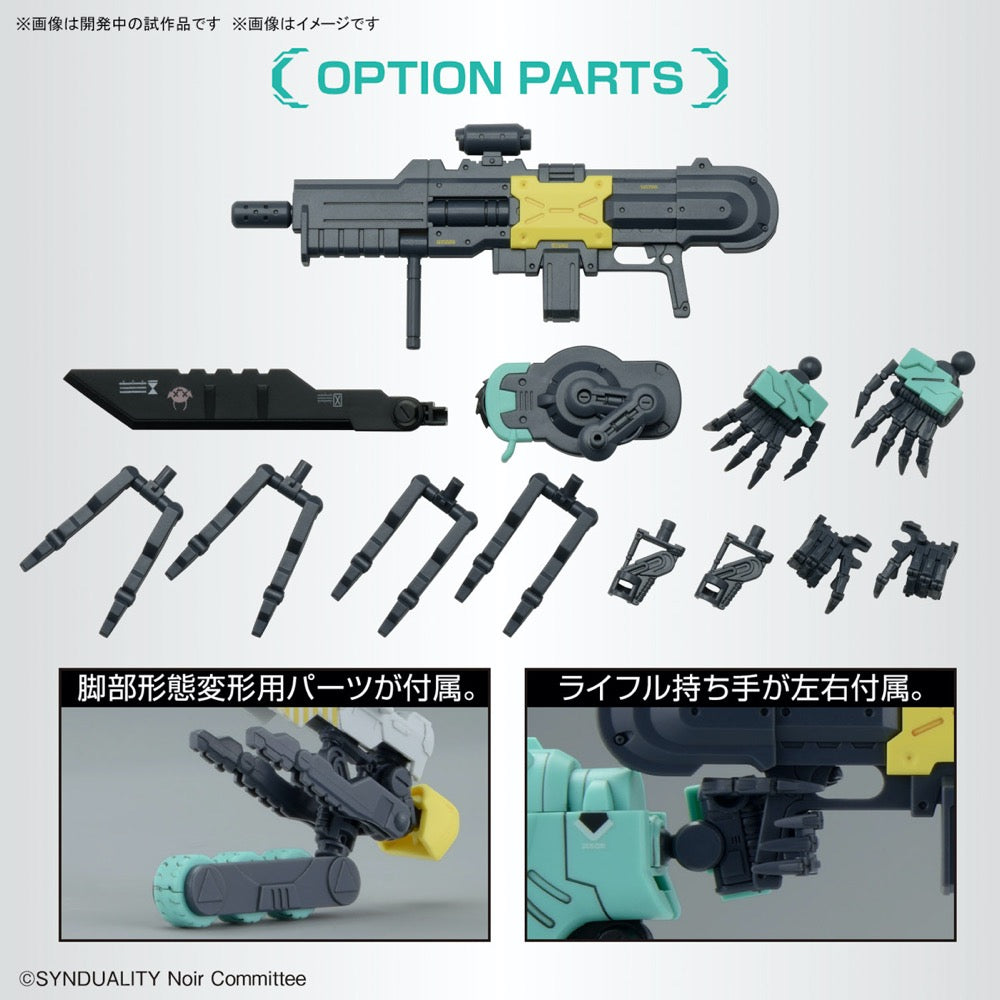 Figures of the main characters Kanata and Noir are included. Parts to change the shape of the legs are included to reproduce both its walking state and the roller-dash mode. Stickers are also included.