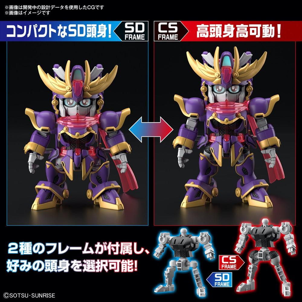 Two types of frames are included with this kit: use the SD frame for a cuter, more super-deformed appearance, and use the CS frame for a taller, more elongated look. The robot can be displayed in its Maximum Output Mode and Light Mode with parts exchange; effect parts and weapons are included too. It's compatible with the Legend BB Musha Gundam, Knight Gundam and Command Gundam (all sold separately) for super-deformed Gundam ninja action!