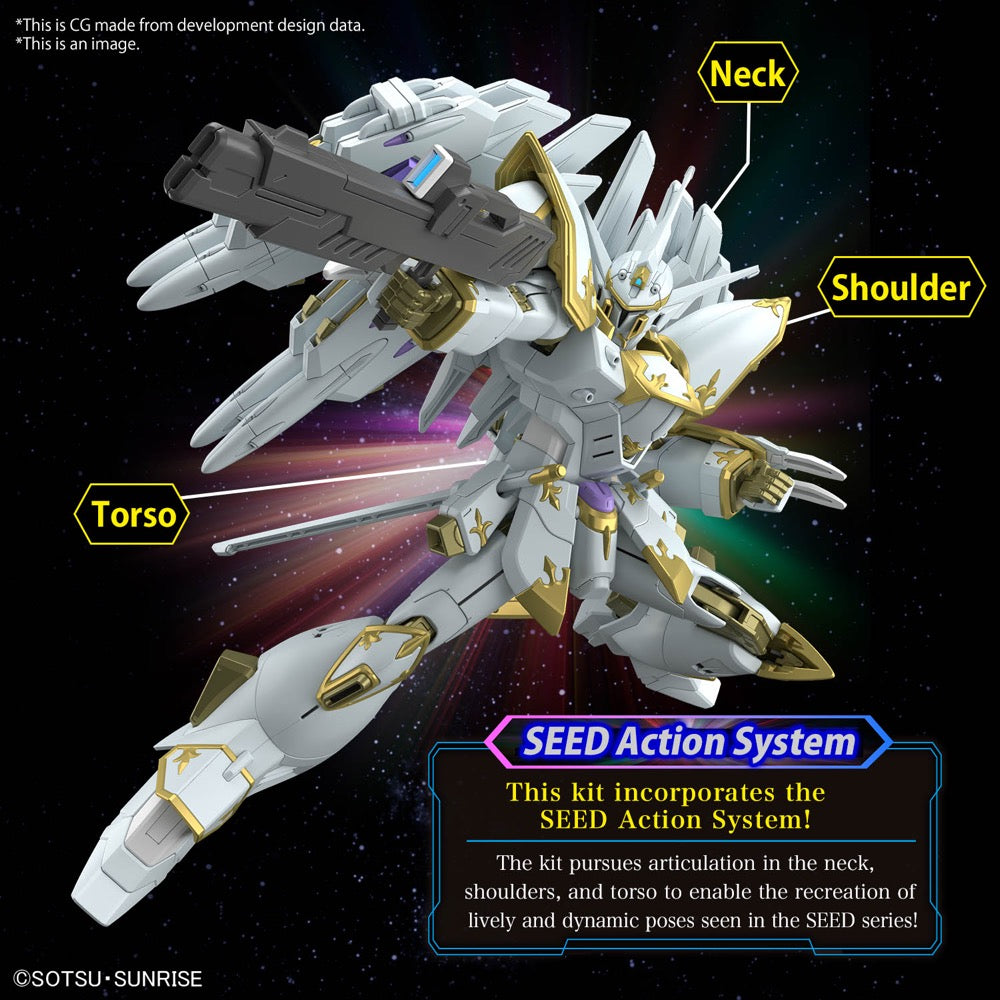 • Equipped with the SEED Action System, an internal structure specialized for reproducing impressive action poses from Mobile Suit Gundam SEED FREEDOM.