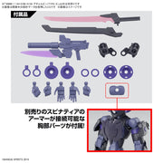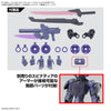 This model kit comes with parts to build the figure itself, armor parts, and weapons too. Two types of armor that can be attached to the shoulders and waist are included; the head visor can be adjusted up and down by replacing parts. The clear parts of the visor can be removed and connected to the waist joint parts, and the newly designed energy blade can be removed from its sheath. A chest part is also included that can be customized with the armor that comes with the Spinatia (sold separately).