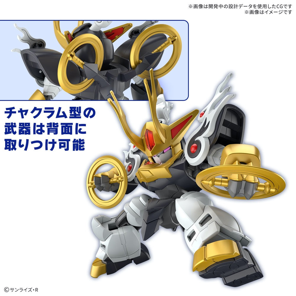 The kit uses a frame common to the series, and the parts can be removed from the runners by hand -- no tools required, and these kits also assemble without the need for glue! The chakram-type weapons can be attached to its back, and the head and weapons are reproduced in a gleaming metallic golden color. This limited-edition version also comes with original parts.