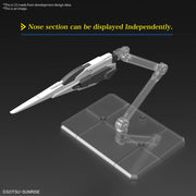 The Zeus silhouette can also be transformed into a single MA form. The large volume of the main body with a total length of about 500 mm can be displayed with the attached action base. The hatches on the back and legs can be opened and closed, and the state in which the missile warhead is exposed can be reproduced by replacing parts.