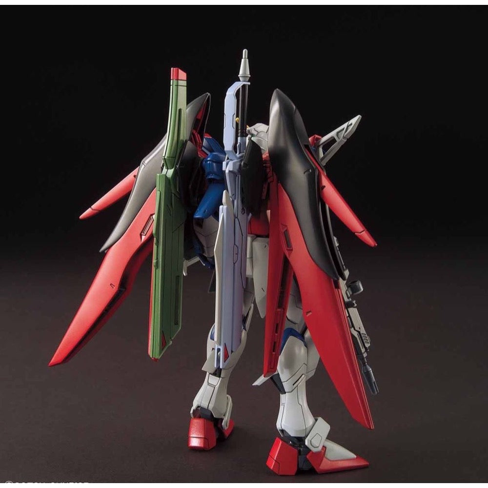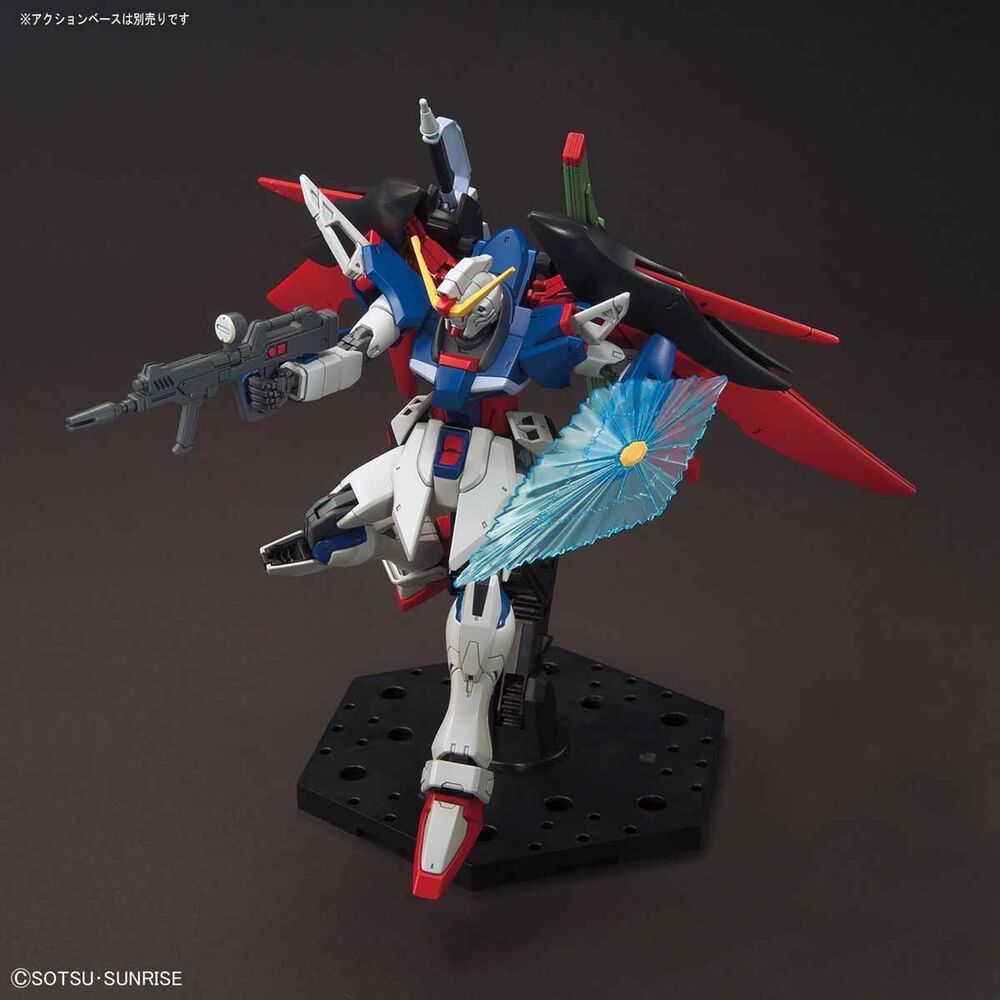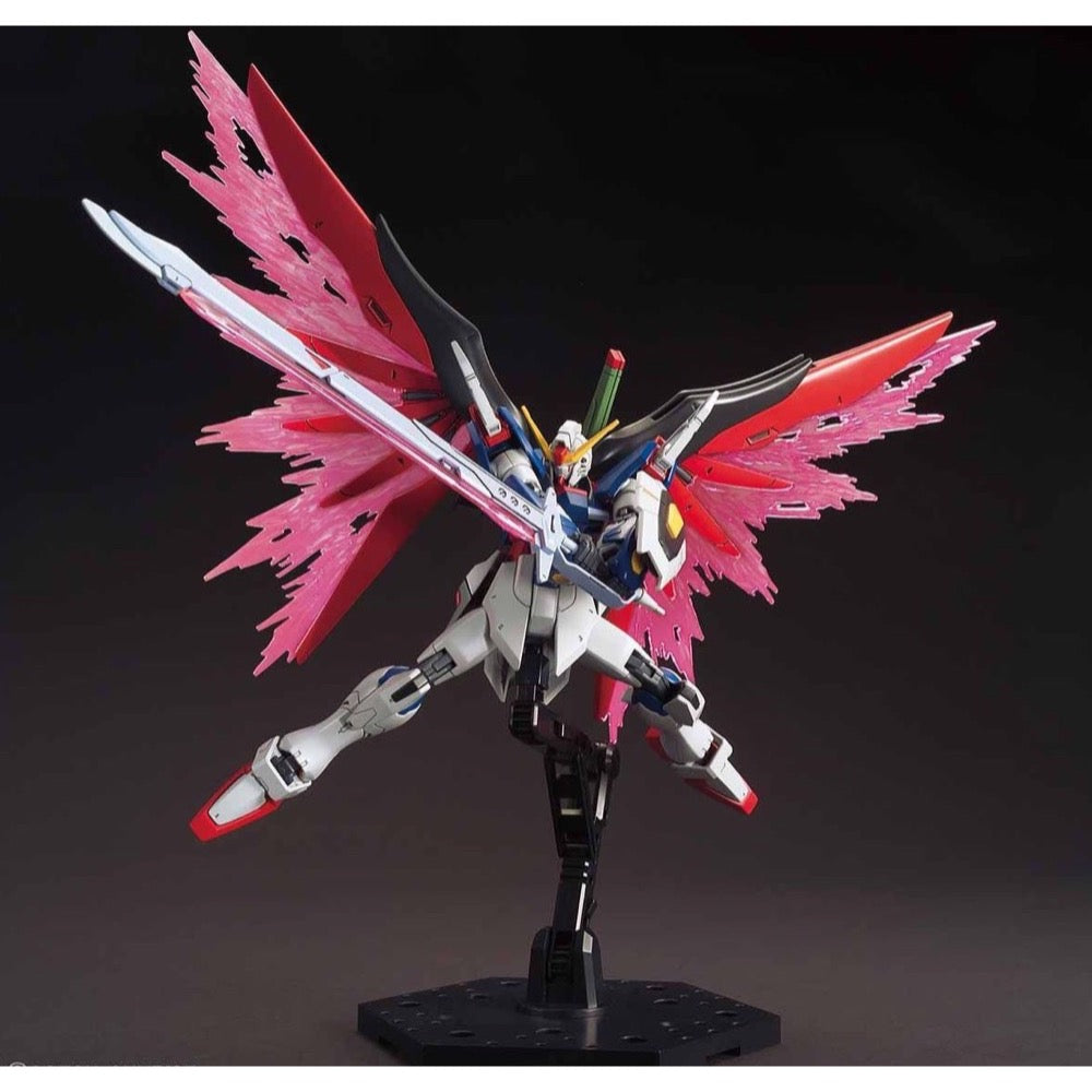 Destiny Gundam Rebuilt from the Ground Up This kit has been released to celebrate the 15th anniversary of "Gundam SEED Destiny", a new special Destiny Gundam is being released in HG format! Focusing on recreating its dynamic action poses, the Destiny Gundam has been rebuilt from the ground up and incorporates new joints in the torso and waist that allow an unbelievable range of motion. In addition, its complete weapon loadout: Long Range Energy Cannon, Beam Rifle, Arondight Anti-Ship Sword, Beam Boomerangs, Beam Shield has included down to the effect parts in its Wings of Light and Palm Fiocina cannon! Runner x 11, Sticker, Instruction Manual.