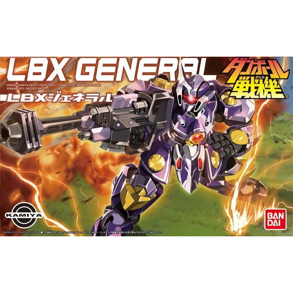 Yaiji Fiji's special robot from the "LBX" anime, the LBX General, gets a fantastic model kit release from Bandai! He's equipped with his Archer Rifle, plus interchangeable hands to hold it with. Foil stickers for the markings are included as well.
