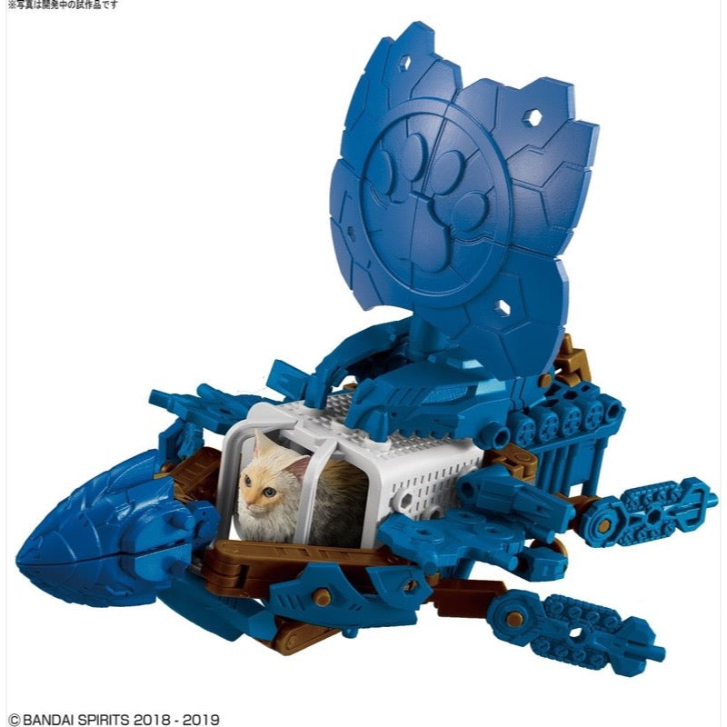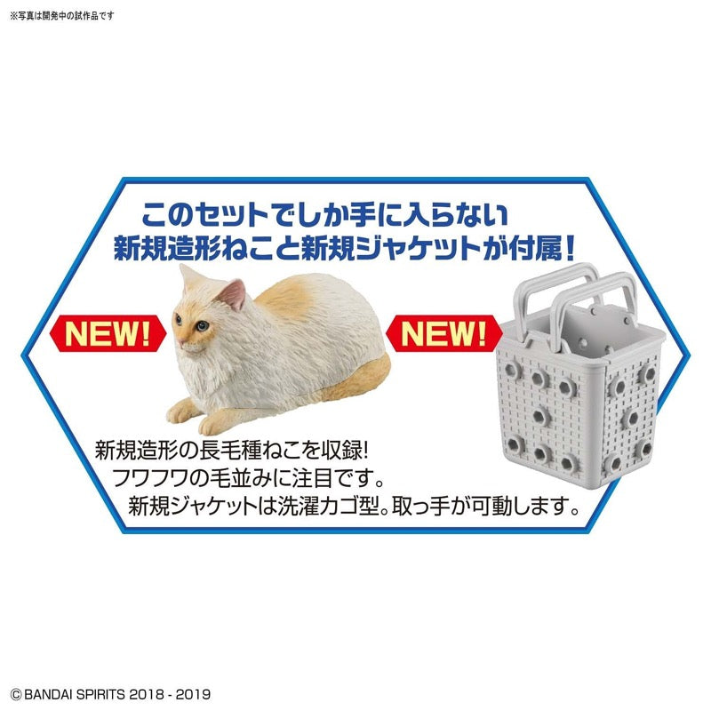 This set's featured kitty is a new longhaired kitty in a sitting position. Not only is this an all-new cat mold, but instead of the standard cardboard-box style carrier, Funamori comes with a basket for a seat instead! You can use the basket to equip the parts in this set -- and other sets -- to form great custom mechs, or the standard vehicle shown here. Neku Busou uses 3mm pegs so you can easily mix and match with your favorite Gunpla kits, too.