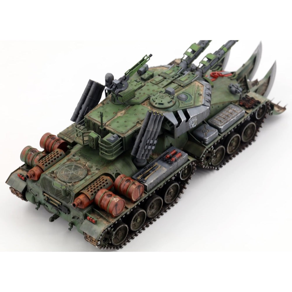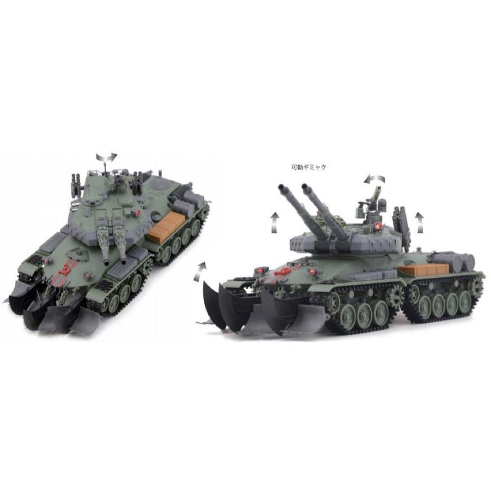 Hailing from a not-too-distant future, this immense beast is loaded with a huge turret mounted with cannons, a missile launcher and more -- and let's not forget those huge blades mounted in front! It lights up after assembly, and features movable hatches, weapons, dozer blades and even an assortment of accessories such as wooden boxes. Clear parts are included, as are decals; maybe best of all, this kit requires neither paint nor glue!