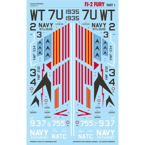 Caracal Decals 48171 1/48 North-American FJ-2 Fury - Part 1 Decals
