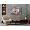This aesthetically striking picture really stand out and catches your eye. If you take a closer look you will find an explosion of color, with details of flowers, butterflies and birds of paradise covering nearly every surface of this art. It evokes the feeling of a summers day when flowers are in full bloom and gardens flourish. The delicate palette of turquoise, pink and purple is subtle and elegant. This floral art is created to bring color and happiness in small and big ways.