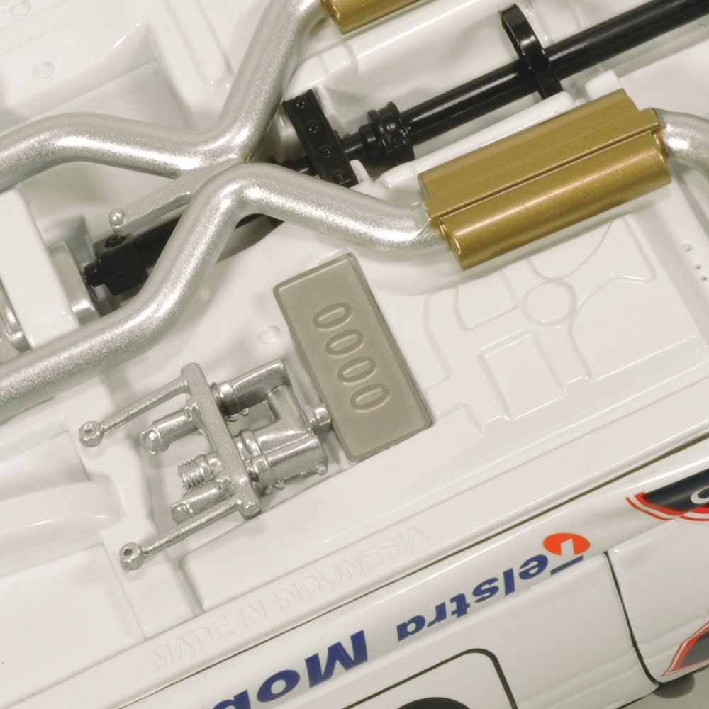 • The detailed engine bay includes a removable carbon fibre engine cover. Underneath you will find pulleys, fuel rails, rockers and velocity stacks.