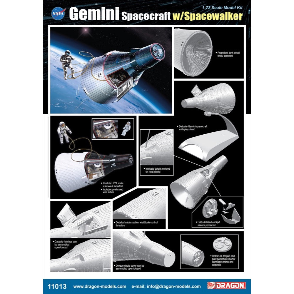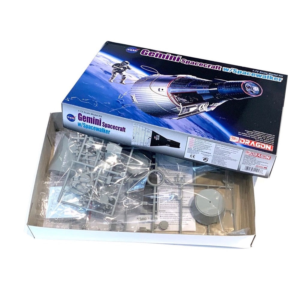 Dragon’s newest 1/72 scale spaceship model kit commemorates these groundbreaking Gemini spaceflights. The set includes a Gemini spacecraft as well as a spacewalking astronaut. The capsule could carry two astronauts, and indeed this kit boasts two crewmen that are extremely well sculpted in this scale. The pair of astronauts (one carrying out a spacewalk whilst tied to his preformed tether, and the other monitoring proceedings from inside the capsule) is made from DS to enable easy painting. Modelers have the option of displaying the exterior hatch open, which allows a good view of the interior of the cramped spacecraft, or closed. As a special bonus for first lot production, the pre-painted propellant tank is included. Such a legendary scene has been captured poignantly in this fine new model kit!