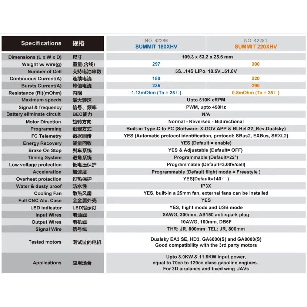 Dualsky DSXM42286 SUMMIT 180XHV Brushless 5S-14S ESC