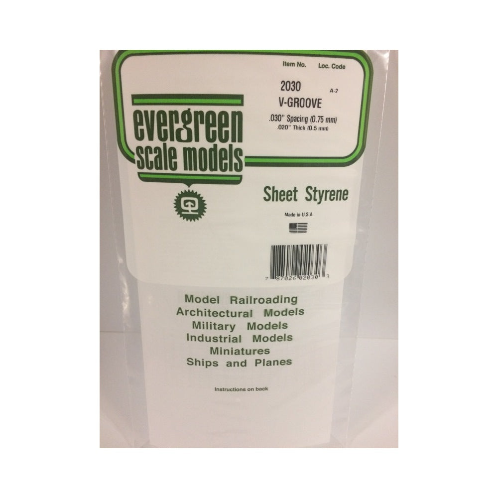 Evergreen 02030 Styrene V-Groove 0.030 x 6 x 12in / 0.76mm x 15cm x 30cm - 1