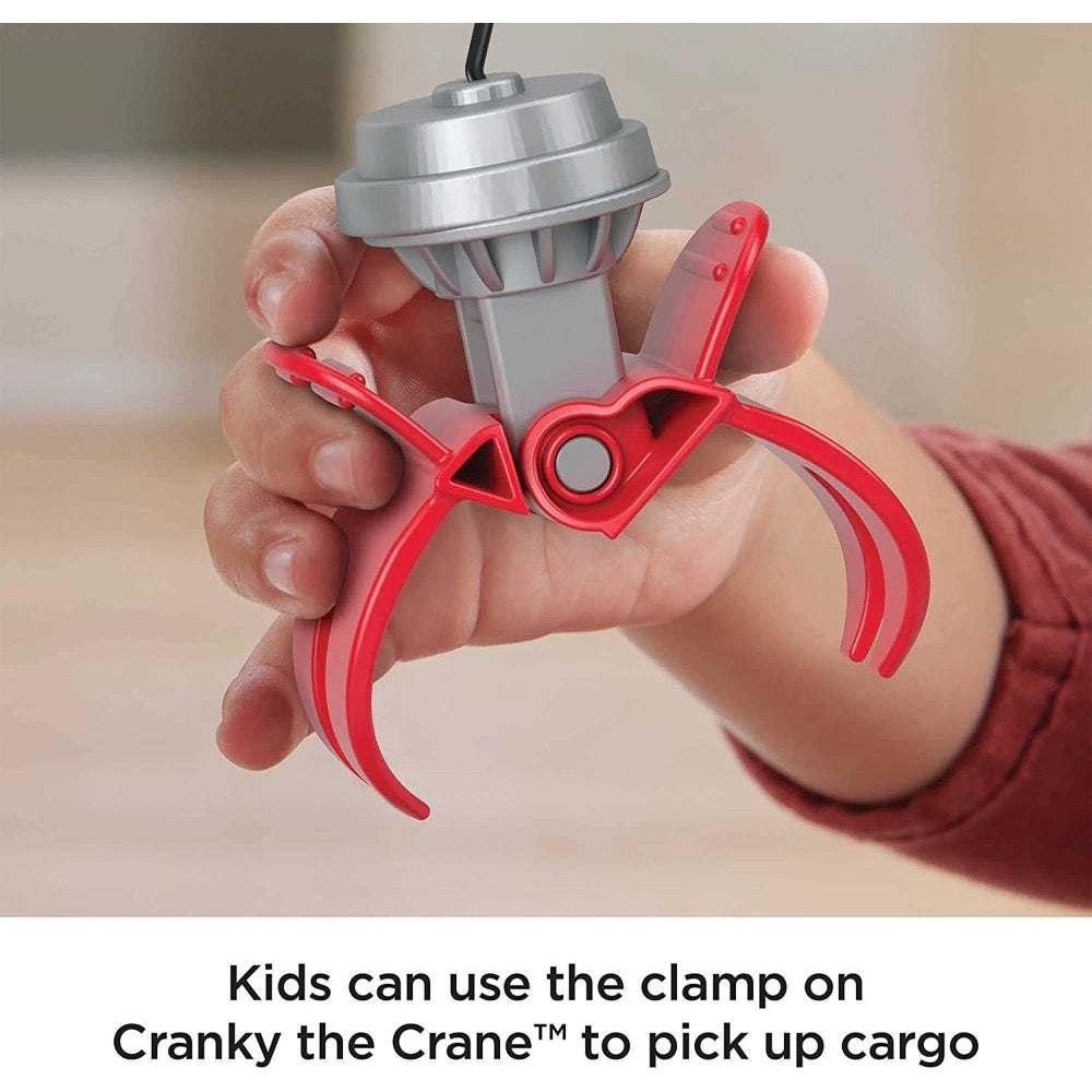 • Attach the magnetic claw or engine cradle to Cranky the Crane to lift and load cargo from Bulstrode the Barge to the docks