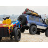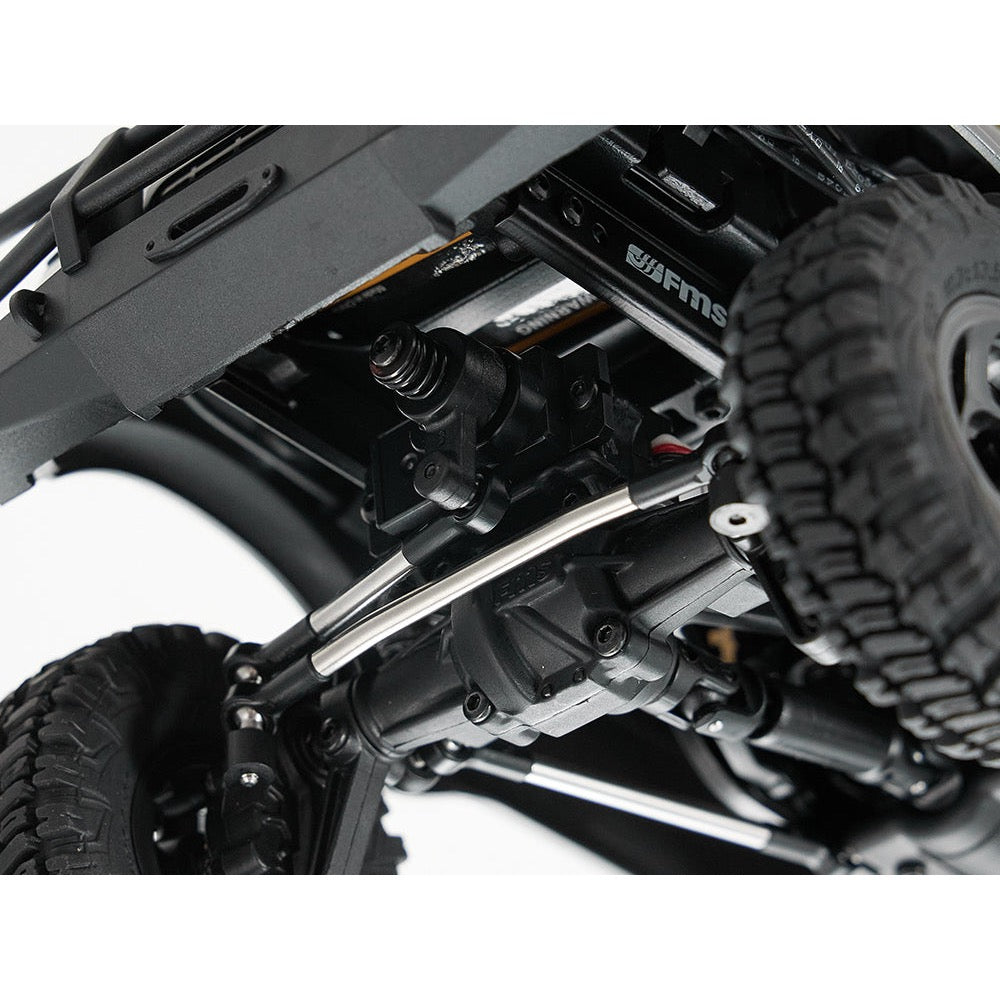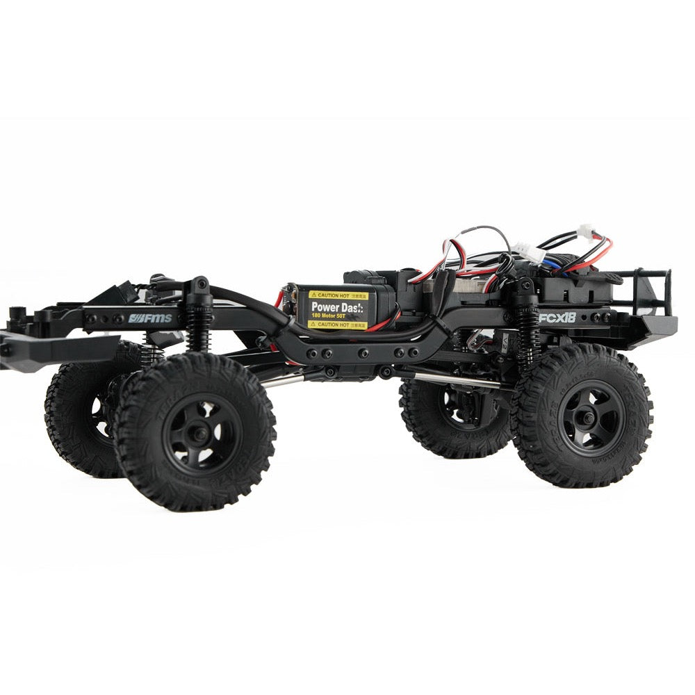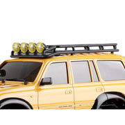 This is FMS 1/18 Toyota LC80 RS Yellow Version 4WD RTR EP w/ 2.4GHz Radio. With steering-linked lights, sleek-looking car body, and delicate vents, FMS 1/18 Toyota Land Cruiser 80 is designed to match static-model standards. Even the interior is carefully recreated in 1:18 scale. A feature-packed trail-proven chassis drives the vehicle, aluminum rails providing a rigid platform; meanwhile, a multilink geometry with panhard bar chassis design allows for top axle articulation. Power is delivered from the super high-torque gearbox to ultra grippy beadlock tires via nylon driveshafts. Land Cruiser 80 features water-resistant electronics: an independent servo, 2-in-1 receiver/ESC, 050 motor and 7.4V 600mAh battery, which allows for strong power and all-weather operations. FMS 1/18 Toyota Land Cruiser 80, an entertaining and desirable solution for RC crawler.