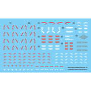 To apply these waterslide decals, carefully cut out the desired design and soak it in water for five to ten seconds. Once the decal begins to loosen, slide it off of the backing and onto your model, positioning it precisely as needed while using a cloth or cotton swab to gently remove excess water and smooth out any bubbles. Separately sold decal setting solutions can help with the application process, allowing you to apply the decals onto bumpy or curved surfaces with a clean, professional finish.