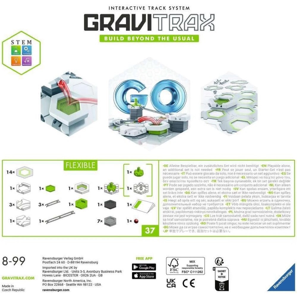 GO Flexible is made for beginners to get to know the GraviTrax universe - just unpack and get started. Can be combined with all GraviTrax products.