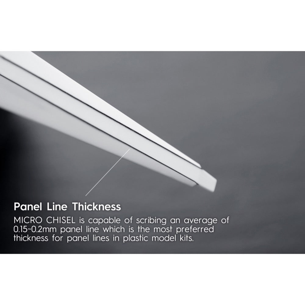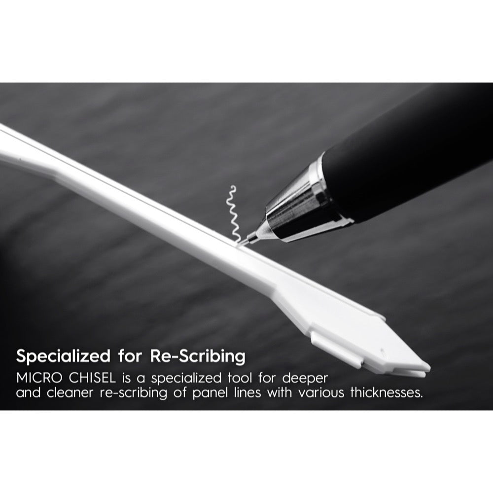 GRIDA is a multi-directional MICRO CHISEL with a mechanical pencil scriber that is practical for panel line scribing from novice to expert. It's specialized for deeper and cleaner re-scribing panel lines. MICRO CHISEL's multi-directional technology is stable when scribing on a flat, curve or irregular shaped surfaces. It can scribe between 0.15mm to 0.20mm lines, and it can scribe up to 0.30mm by scribing multiple times.