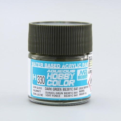 Mr Hobby (Gunze) H330 Aqueous Semi-Gloss Dark Green BS381C/641 Acrylic Paint 10ml