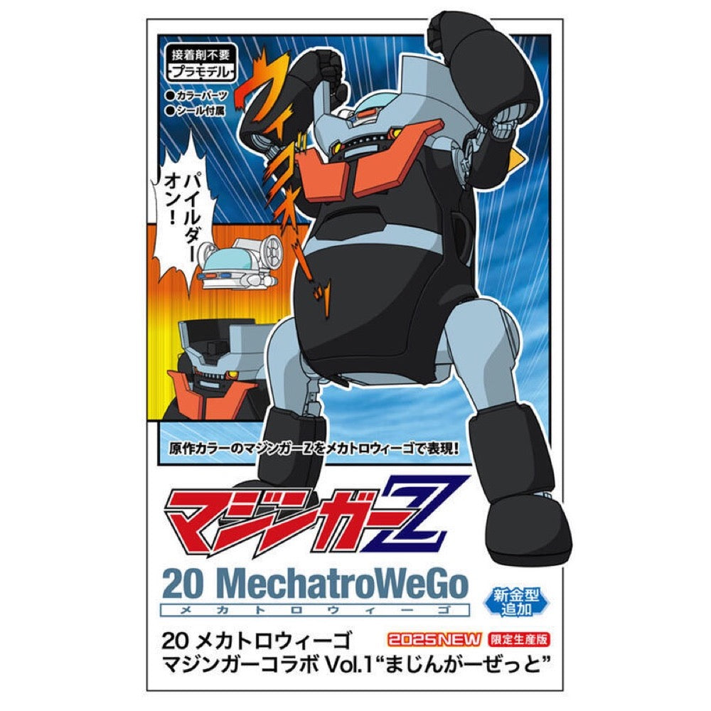 Mazinger Z in its original colors is now recreated with Hasegawa's latest 1/20-scale "MechatroWeGo" model kit! It'll be posable after assembly, and the Pilder lifts out of Mazinger's head, too. You'll love this friendly-looking version of an iconic robot,