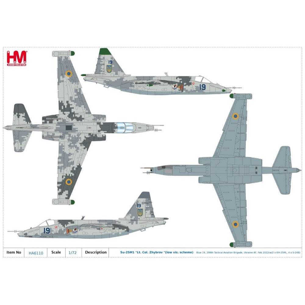 Hobbymaster 6110 1/72 Su-25M1 Lt. Col. Zhybrov low vis. scheme Blue 19 299th Tactical Aviation Brigade Ukraine AF February 2022