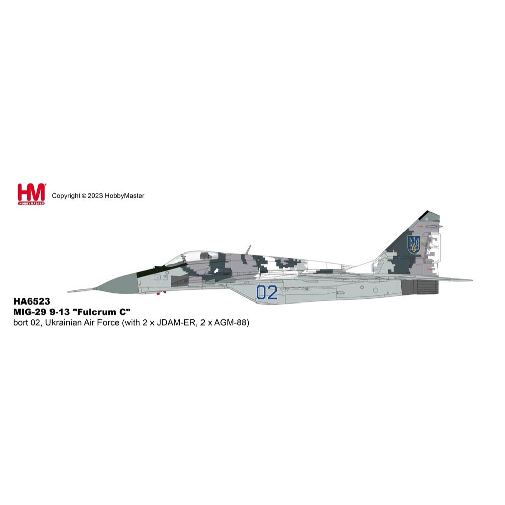 Hobbymaster 6523 1/72 MIG-29 9-13 Fulcrum C Bort 02 Ukrainian Air Force with 2 x JDAM-ER and 2 x AGM-88