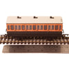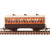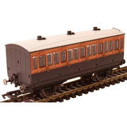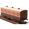 This LSWR coach is modelled as having step boards to enable access at stations with low platforms and oil lamp lighting.