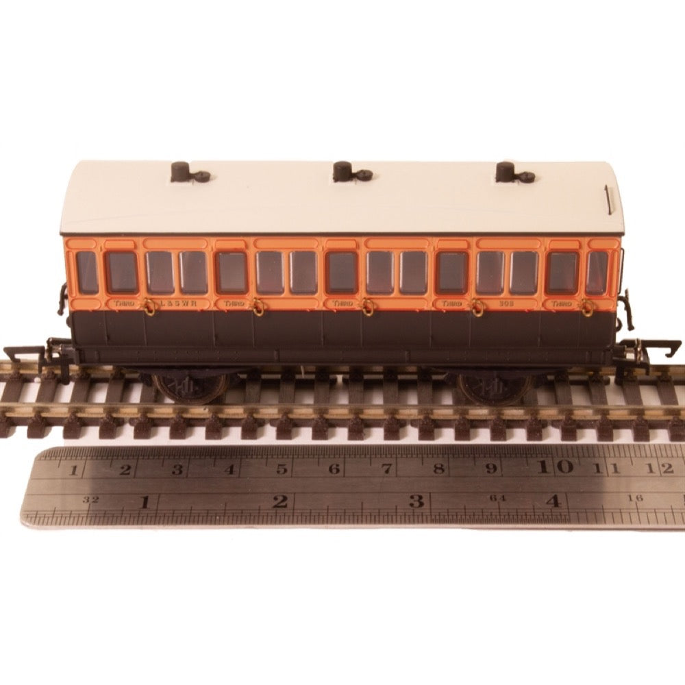 Hornby R40108A OO LSWR 4 Wheel Coach 3rd Class Fitted Lights 302