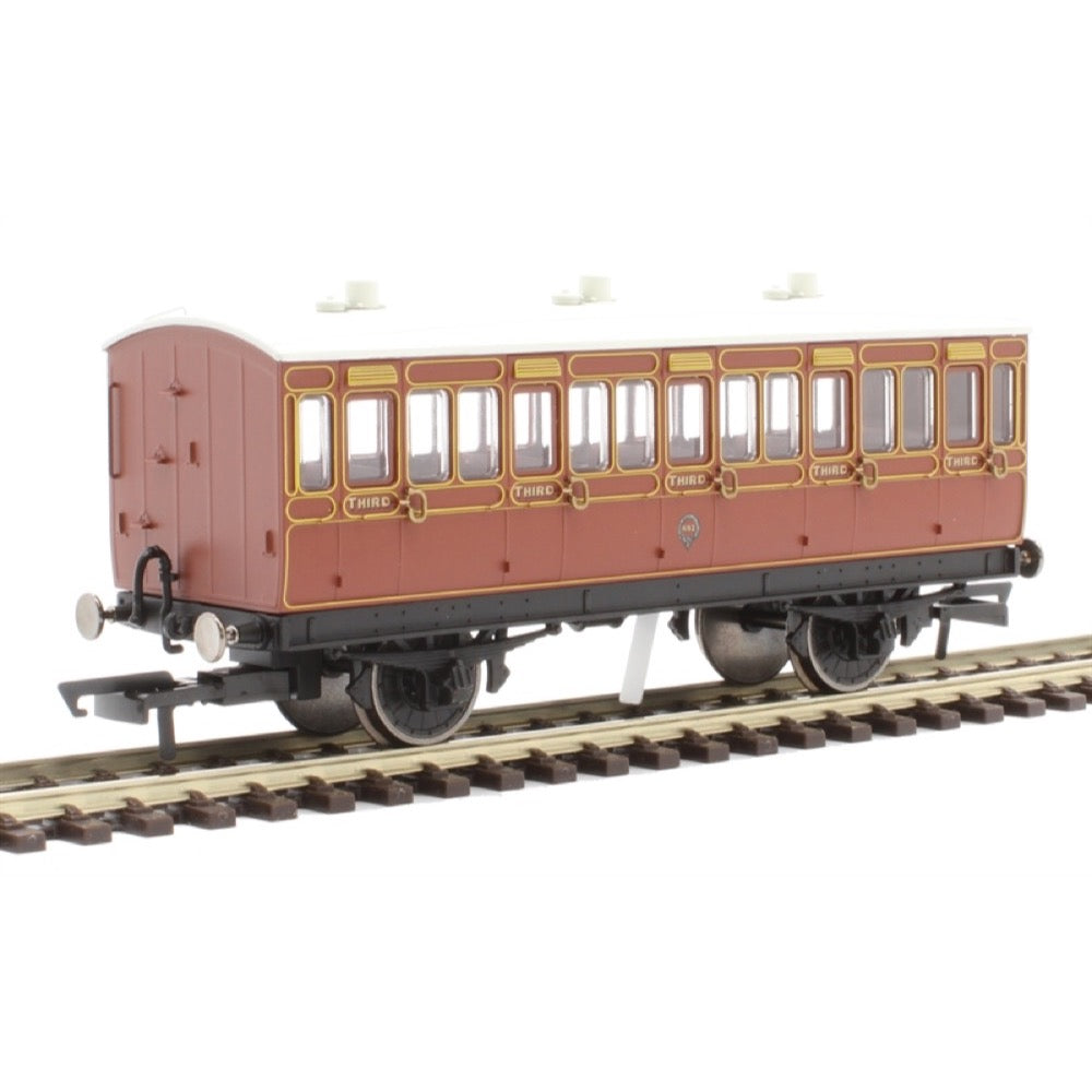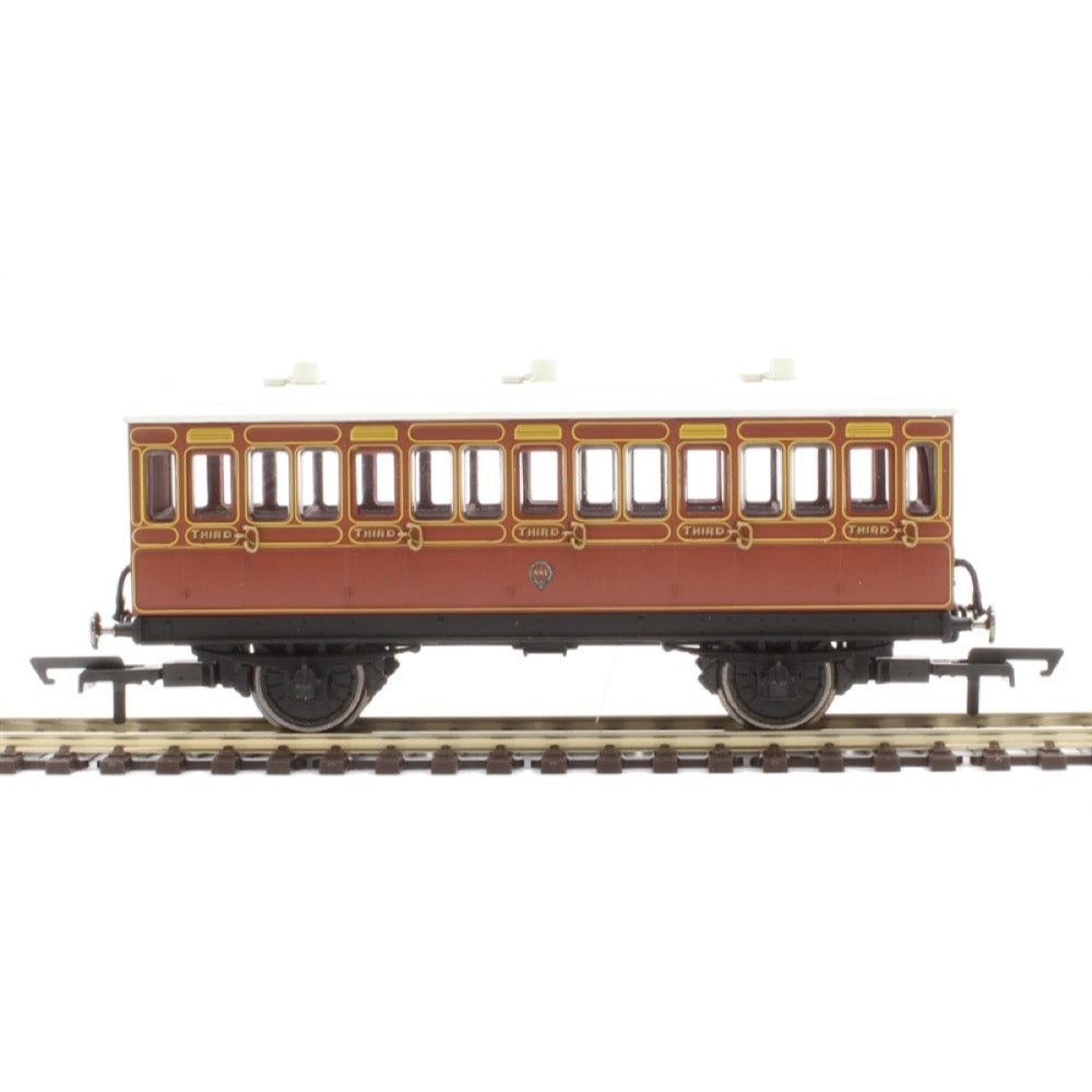 Hornby R40116A OO LB&SCR 4 Wheel Coach 3rd Class Fitted Lights 881