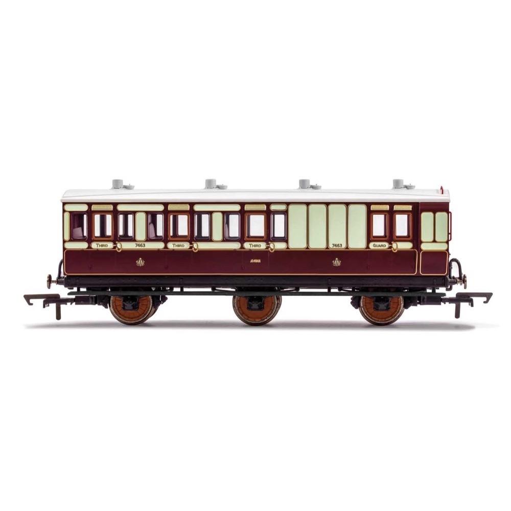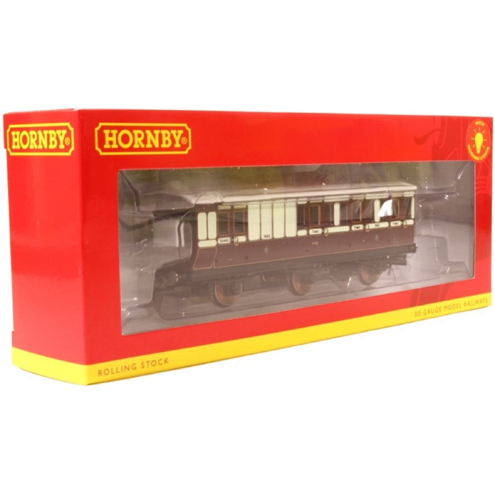 Hornby R40122 OO LNWR6 Wheel Coach Brake 3rd Class Fitted Lights 7463