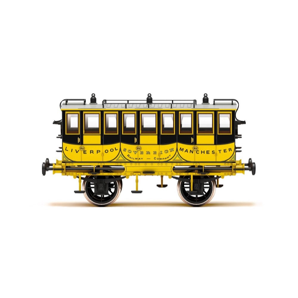The ‘Sovereign’ first-class coach harkens back to a luxury era of travel and evokes a sense of being regal. The model resembles a horse-drawn carriage and is complete in an L&MR yellow livery. The accessory bag contains two chain couplings.