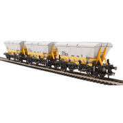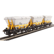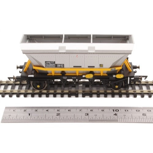 Built from 1964 to 1977, HAA wagons were built as method to move coal more efficiently, particularly with the aim of improving to supply of coal to power stations. It was intended that trains of these wagons could run in a continuous loop from the colliery to the power station and back, with machinery I place to allow loading and unloading at slow speeds.In reality it was often the case that the infrastructure to allow this type of running did not exist, particularly at the collieries, but nonetheless these wagons greatly improved coal transfer. With the decline of Britain's coal industry these previously extremely common wagons have now become extremely rare with most having been either scrapped or rebuilt as another form of wagon.Based upon the successful HAA wagon, the HFA design added an aerodynamic canopy designed to stop coal-dust from escaping.Wagons included in this pack: Coal Sector HFA 358713; Coal Sector HFA 358550; Coal Sector HFA 358784.