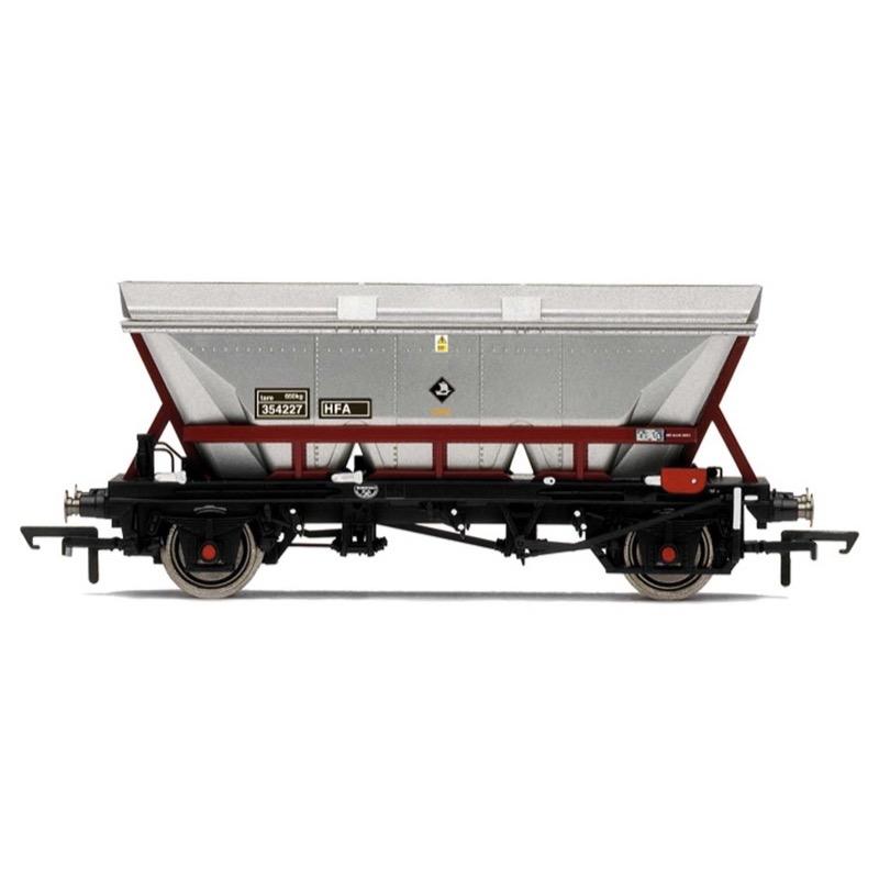 Built from 1964 to 1977, HAA wagons were built as method to move coal more efficiently, particularly with the aim of improving to supply of coal to power stations. It was intended that trains of these wagons could run in a continuous loop from the colliery to the power station and back, with machinery I place to allow loading and unloading at slow speeds. In reality it was often the case that the infrastructure to allow this type of running did not exist, particularly at the collieries, but nonetheless these wagons greatly improved coal transfer. With the decline of Britain's coal industry these previously extremely common wagons have now become extremely rare with most having been either scrapped or rebuilt as another form of wagon. Based upon the successful HAA wagon, the HFA design added an aerodynamic canopy designed to stop coal-dust from escaping.